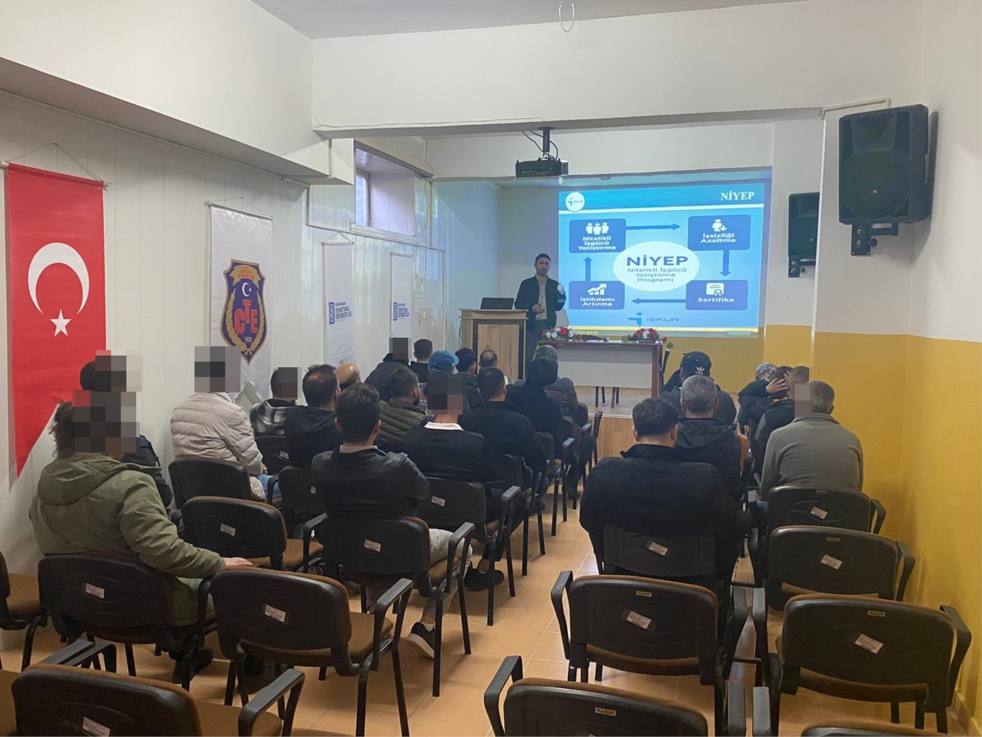 Adalet Bakanlığı ile Çalışma ve Sosyal Güvenlik Bakanlığı arasında imzalanan “Hükümlü ve Yükümlülerin İstihdamına Yönelik İşbirliği Protokolü” kapsamında 18.11.2025 tarihinde Müdürlüğümüzün seminer salonunda Karaman Çalışma ve İş Kurumu’nda görevli İş ve Meslek Danışmanı Rahim BİLGİÇ tarafından “İŞ ARAMA, İŞ BULMA, ARAÇ VE YÖNTEM DESTEĞİ, ESKİ HÜKÜMLÜLERİN KENDİ İŞİNİ KURMA HİBE PROJELERİ” konulu seminer sunumu gerçekleştirildi.