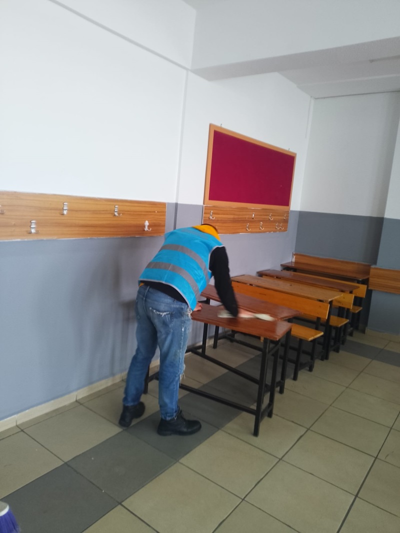 Karaman Milli Eğitim Müdürlüğüne bağlı 1 okulda boya, badana ve temizlik işleri yapılarak okulun sınıf ve atölyeleri hazır hale geldi.
